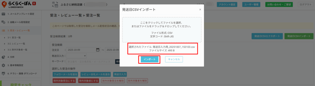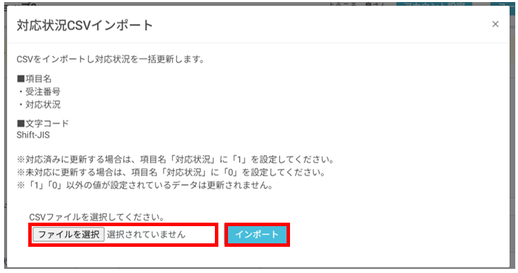 編集したCSVを選択し「インポート」ボタンをクリックします。