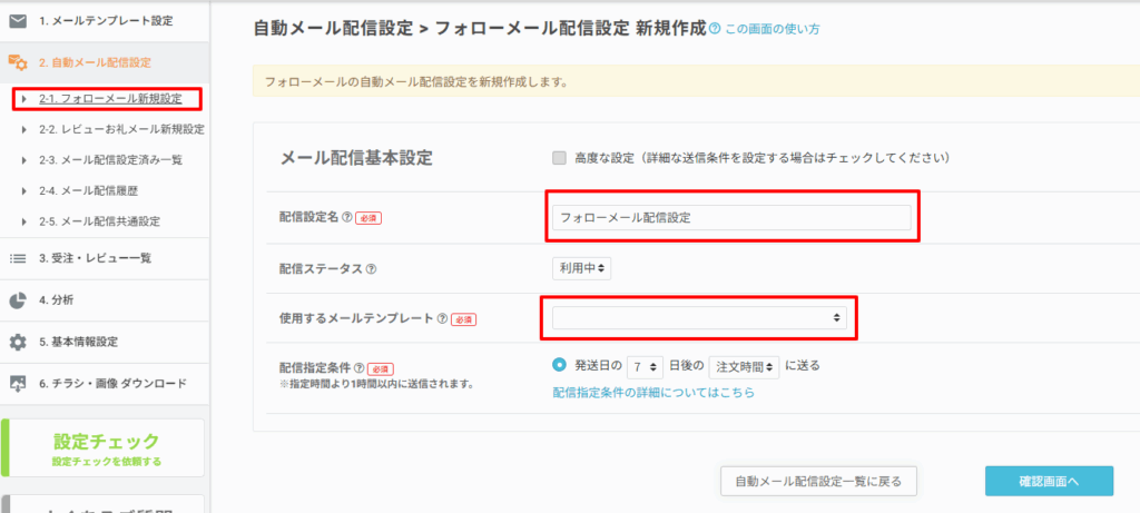 2.自動メール配信設定 > 2-1.フォローメール新規設定